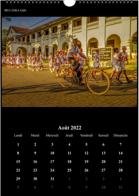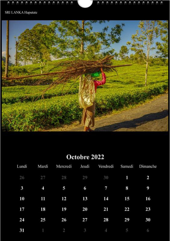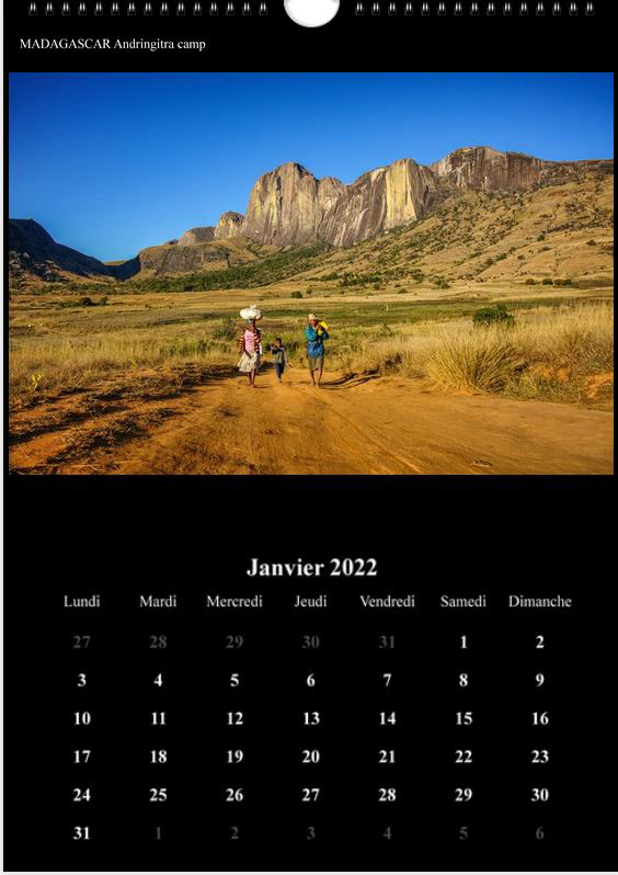 Voici mon calendrier mural A3 pour l'année 2022 qui est constitué de photos réalisées lors de différents voyages avec des rencontres humaines (Brésil, Madagascar, Sri Lanka, Chine...). Il est en vente au prix de 33€ TTC frais de livraison inclus.