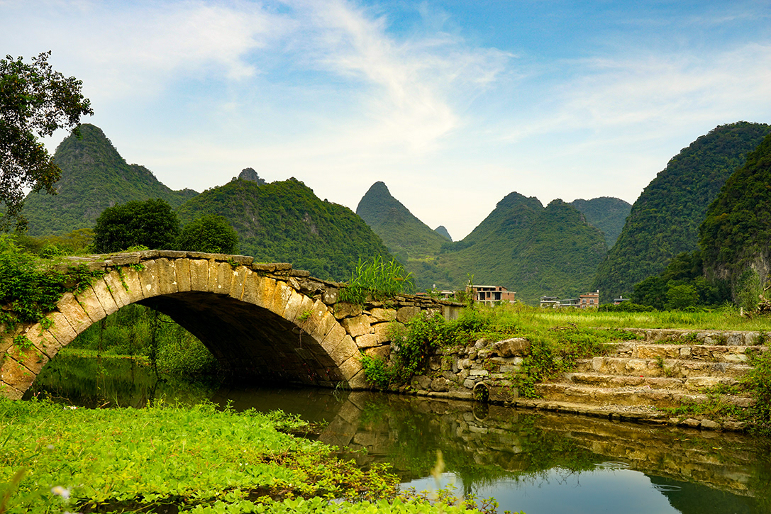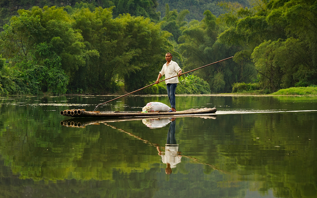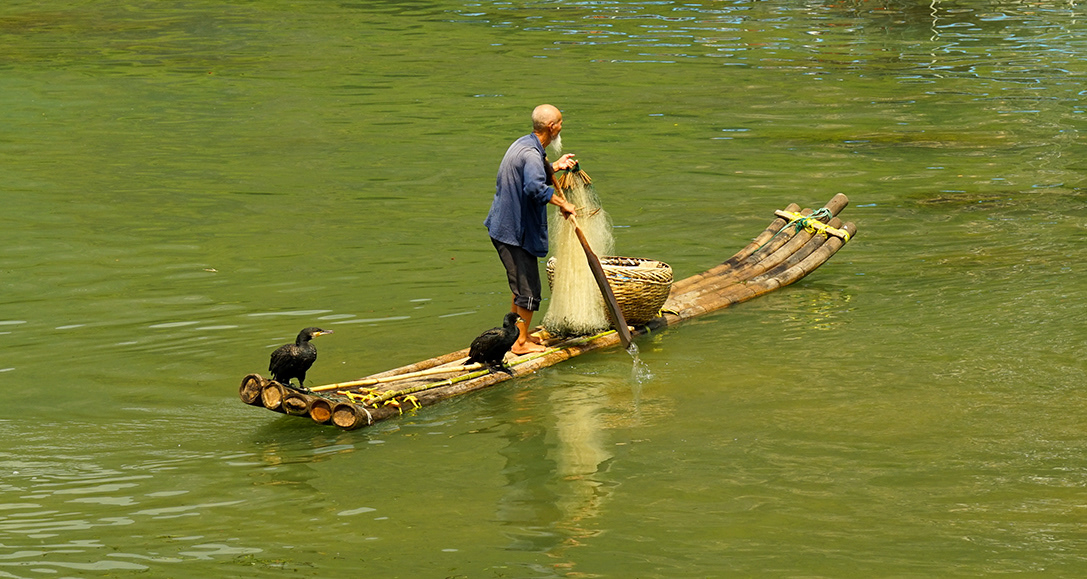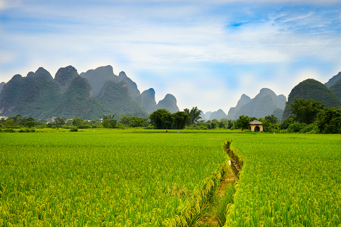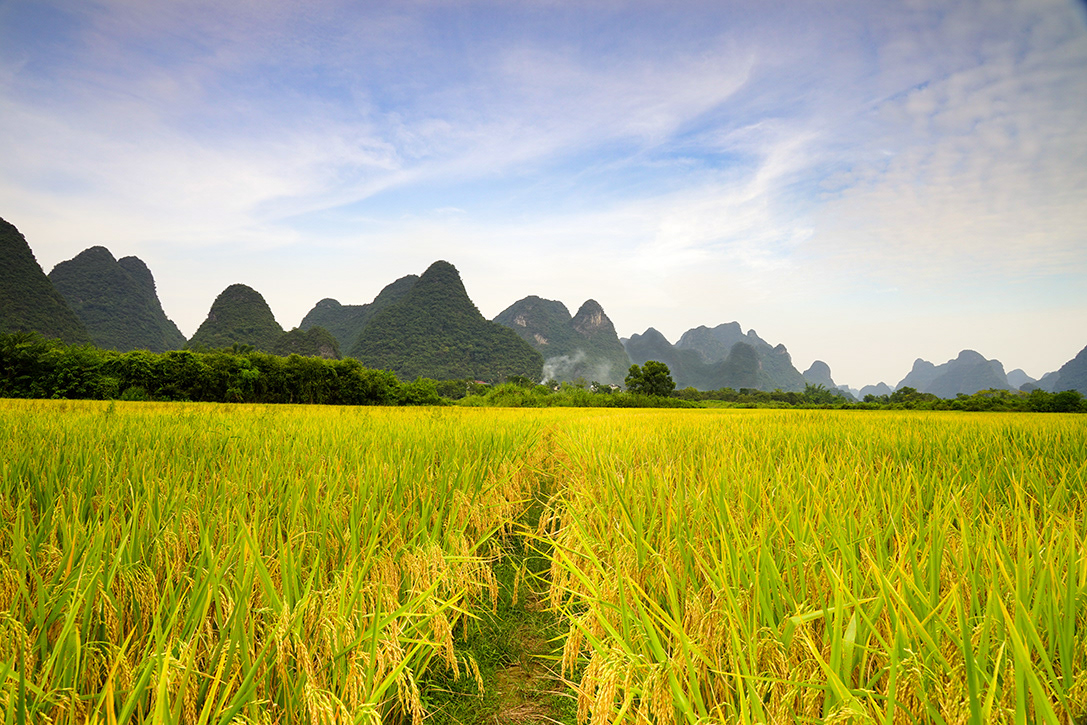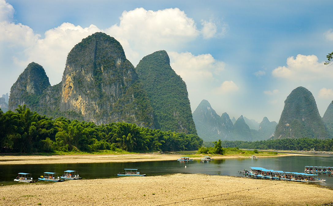 Le Yangshuo est un district de la région du Guangxi, au sud de la Chine. Il est connu pour ses sommets karstiques et spectaculaires traversé par des rivières (Lee, Yulong...) sous une brume humide.