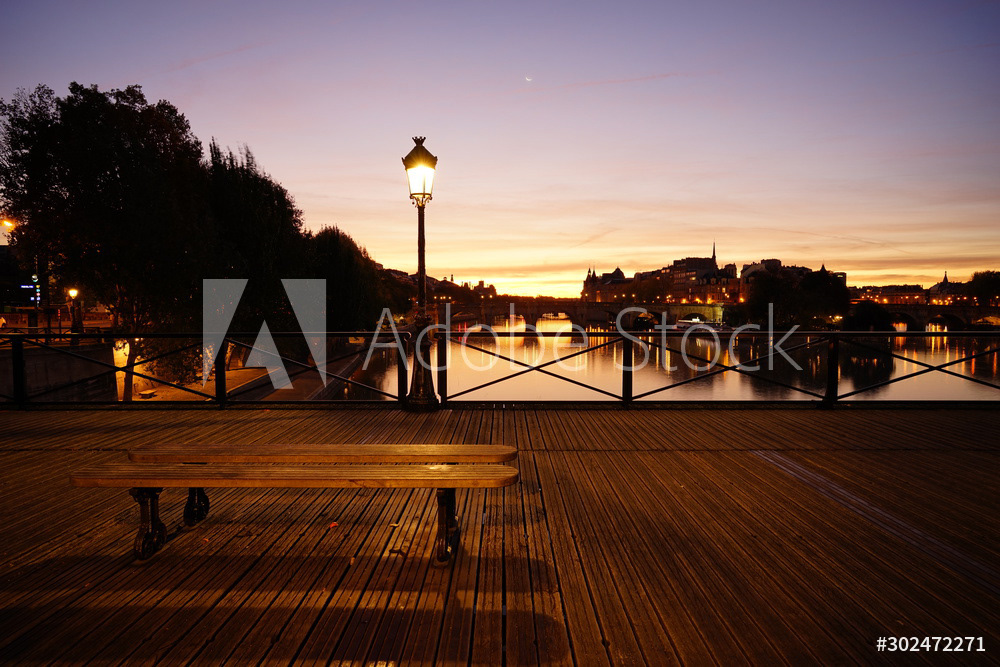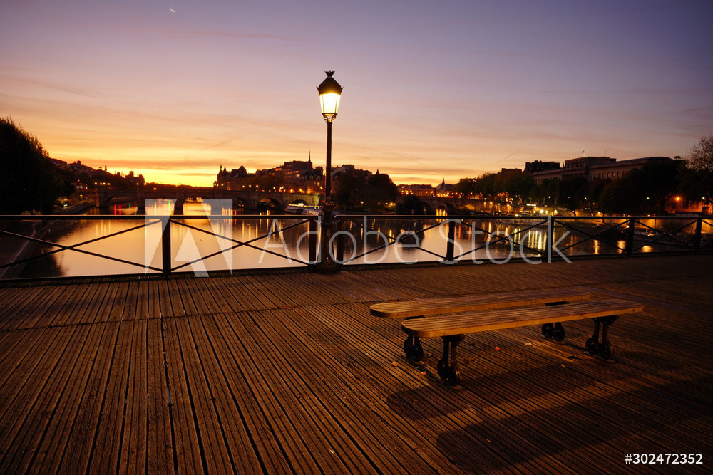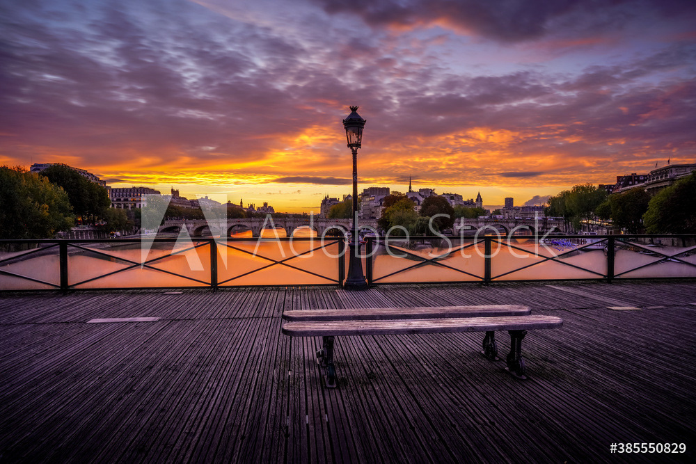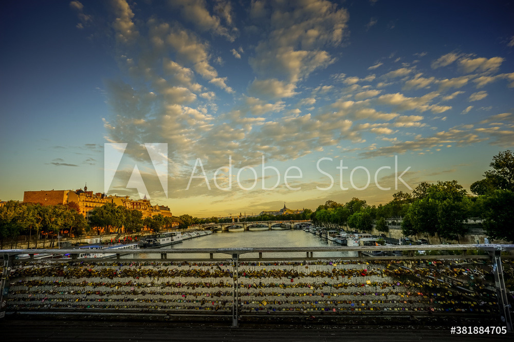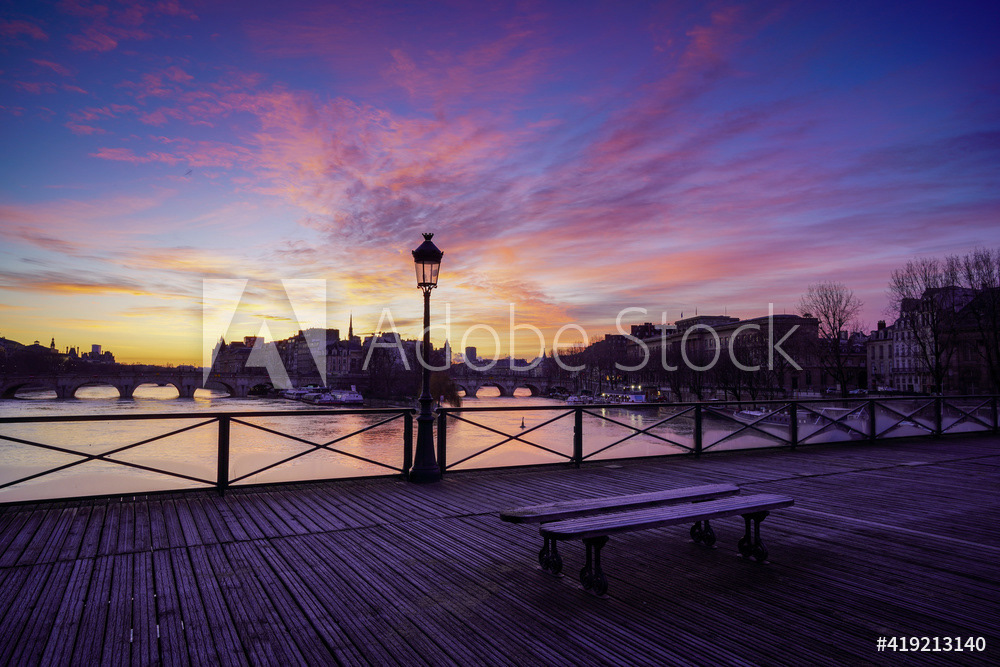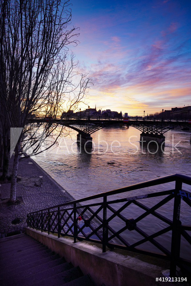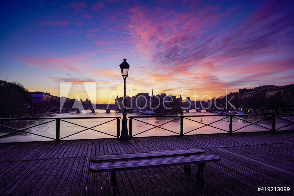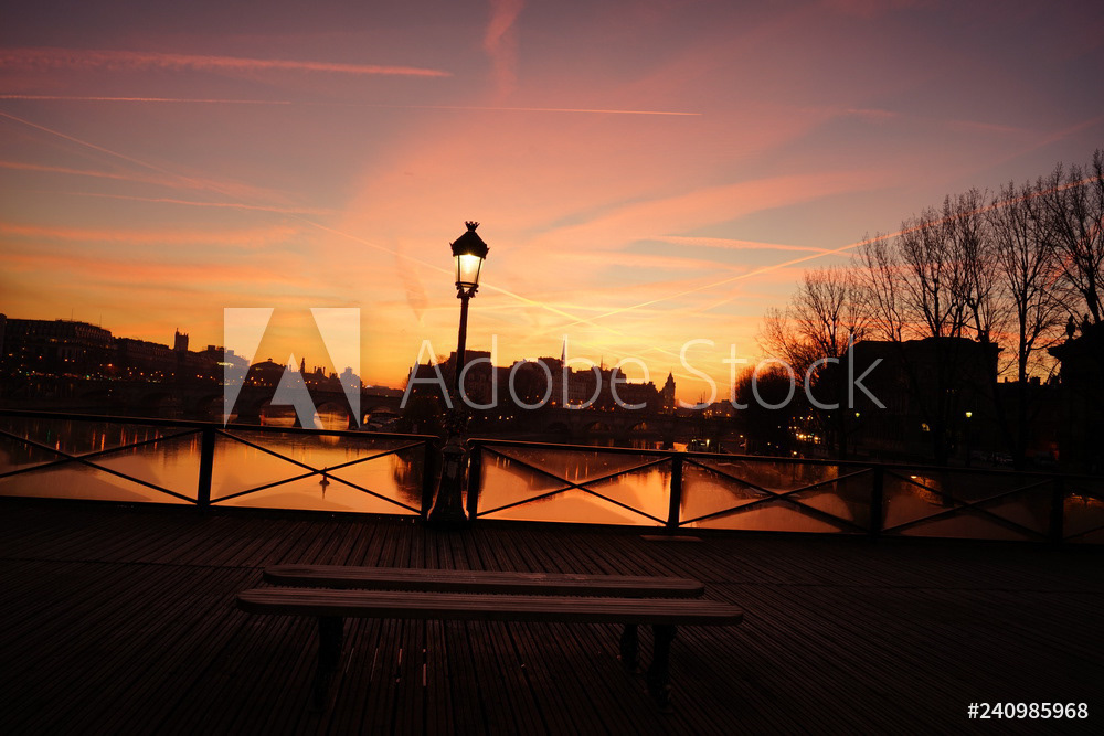 Patchwork de photos réalisées depuis le pont des Arts au lever de soleil.