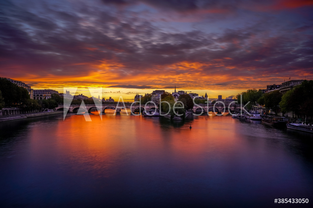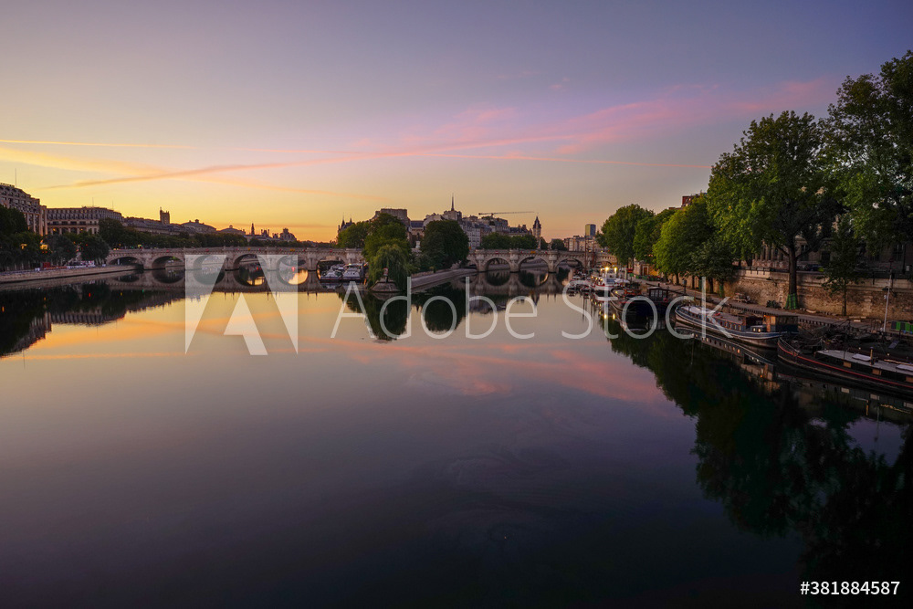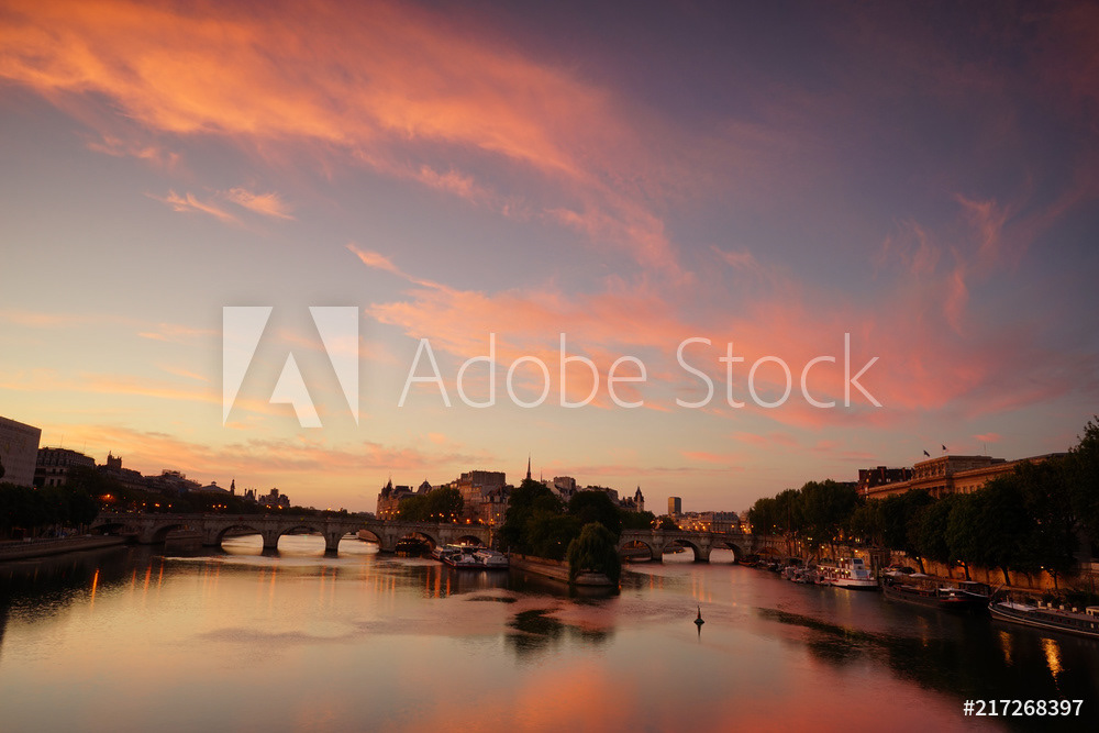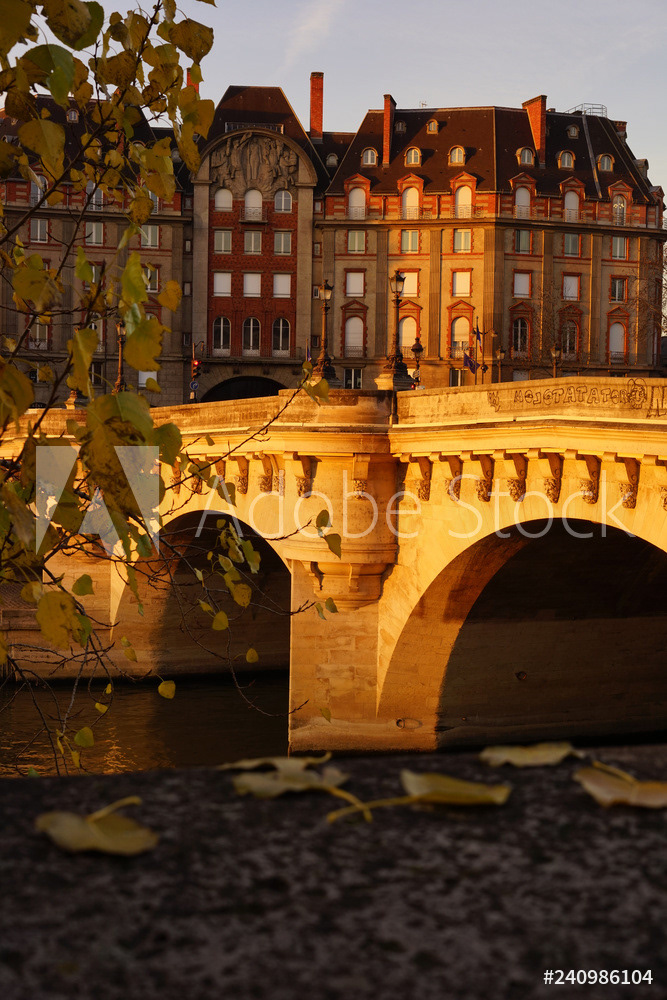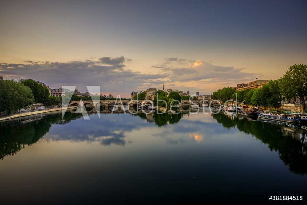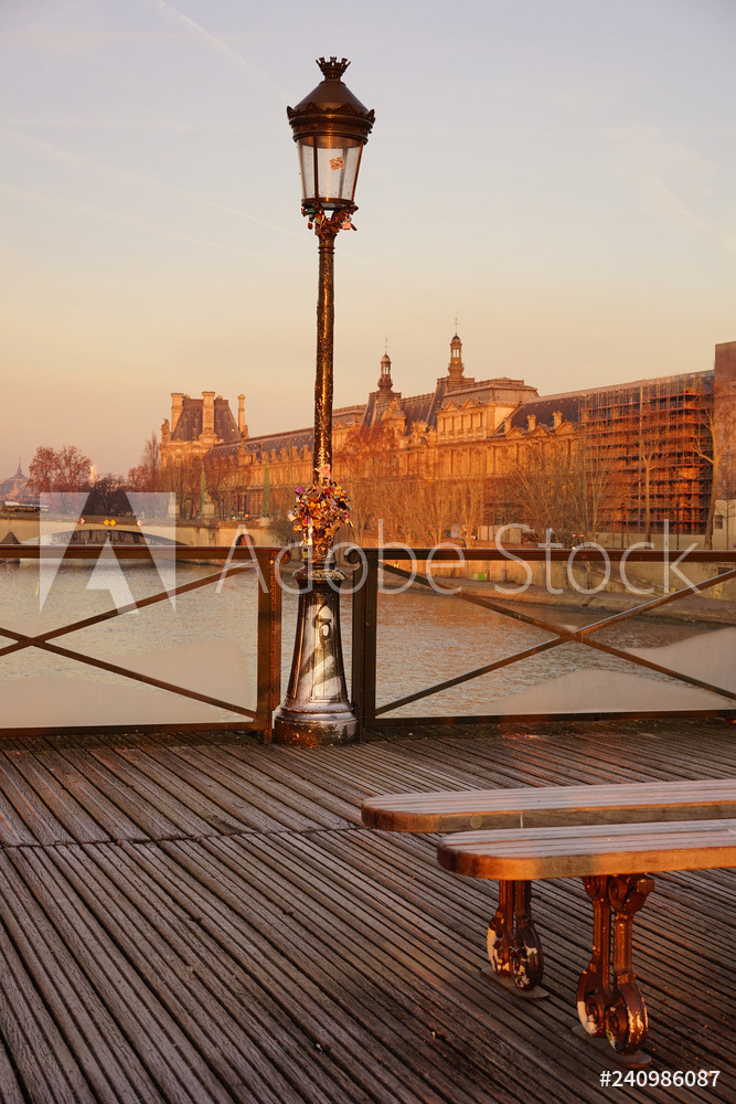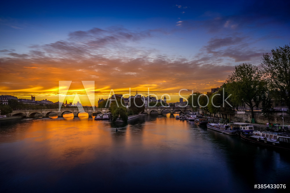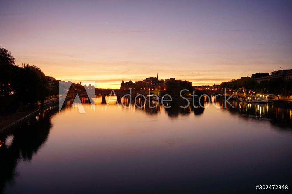 Patchwork de photos réalisées depuis le pont des Arts au lever de soleil.
